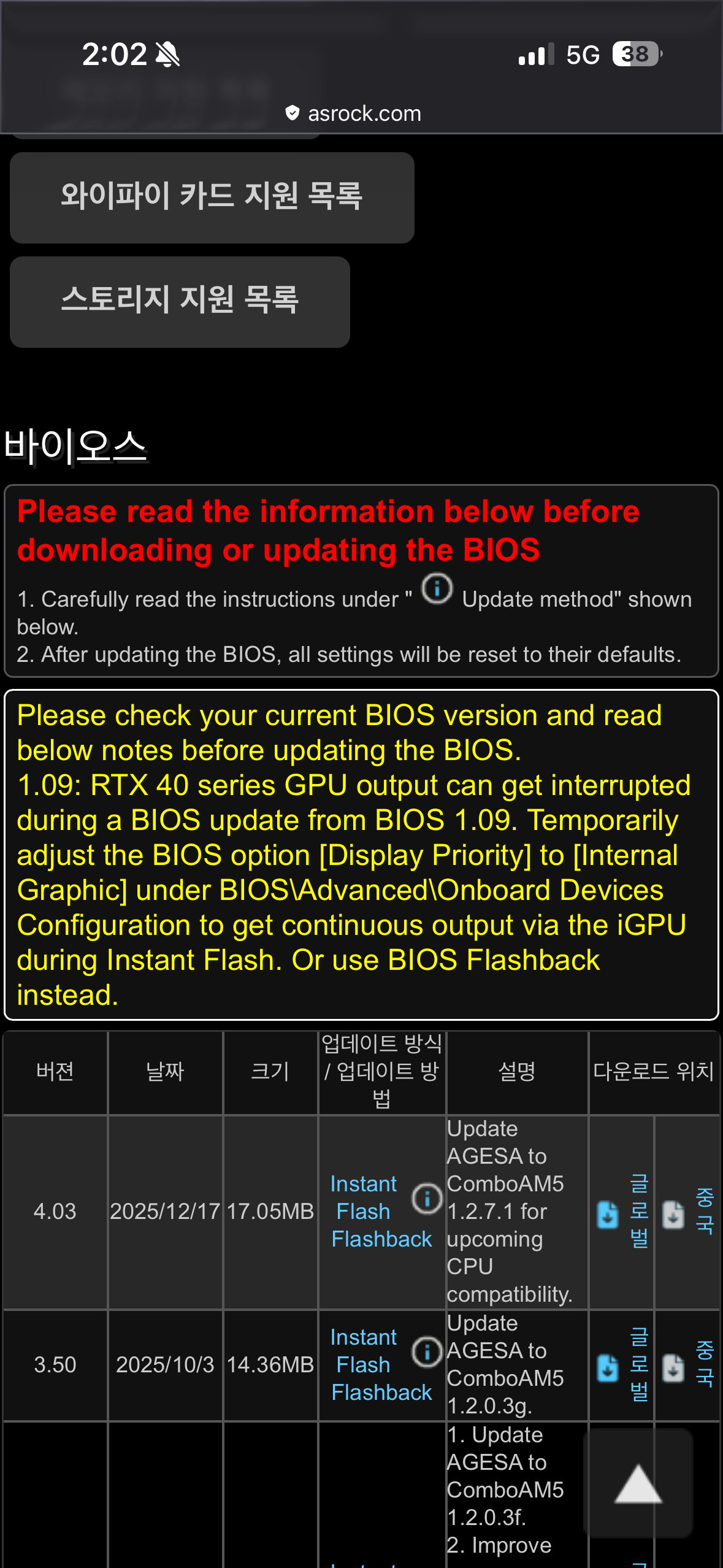 애즈락 A620M HDV/M.2 바이오스 업데이트 있네요. USB로 메인보드 업데이트 하세요.
